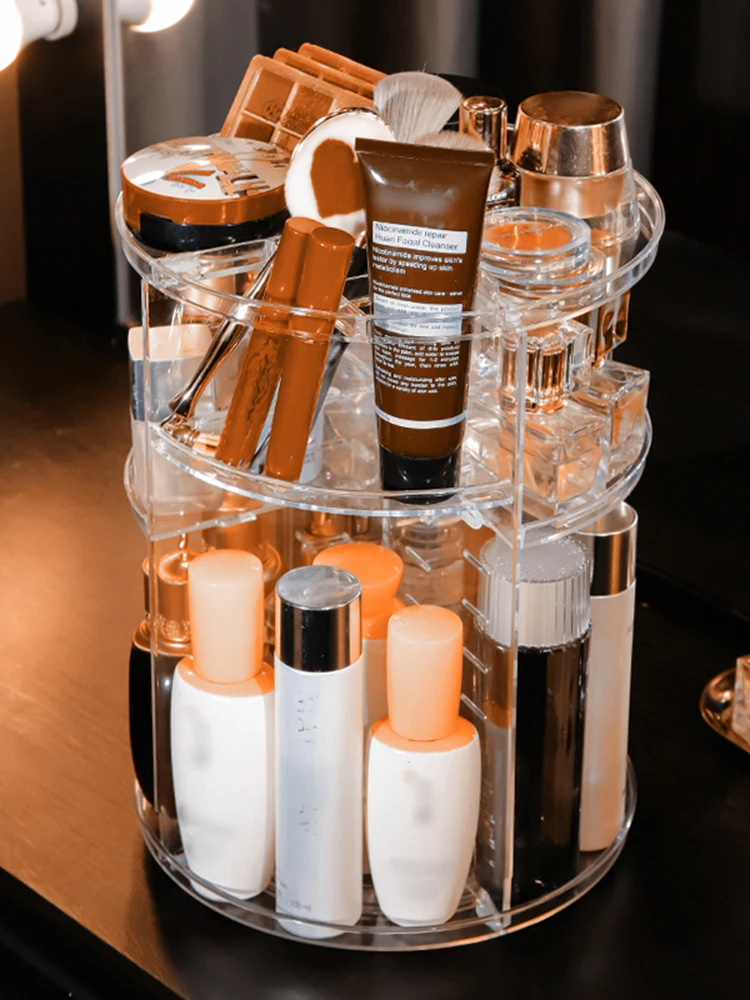 Cosmetics Rotating Storage Box Transparent Multifunctional Desktop Lipstick Skincare Product Sorting Shelf Cosmetic Storage Disp